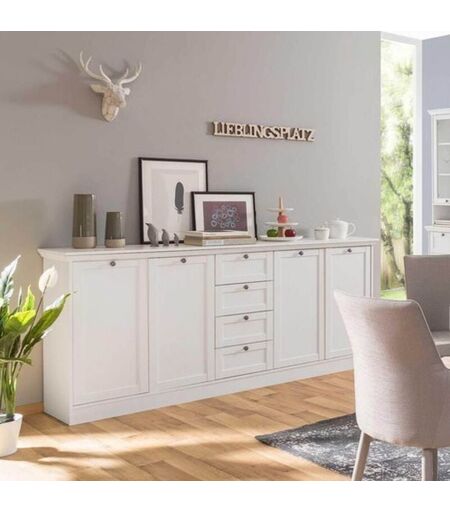 Credenza Landwood 52 colore bianco 4 ante e 4 cassetti Stile rustico per la credenza Landwood 52 , composta da 4 cassetti con scorrimento , 4 porte e 4 ampi ripiani. I pomelli della credenza Landwood 52 sono in metallo effetto antico, solidi e resistenti. Caratteristiche: Colore bianco opaco. Misure : 200 x 90h x 40 cm. Realizzata in nobilitato di qualità. Perchè scegliere la credenza Landwood? Per il suo design capce di donare agli ambienti quel tocco vintage che stavi cercando. E' capiente e versatile. Puoi collocarla in cucina, in soggiorno o nella zona living. E' solida e resistente. Un elemento d'arredo unico e funzionale. ...