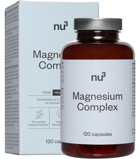 Gli integratori non sostituiscono un’alimentazione equilibrata e variegata e uno stile di vita sano. Foglio Illustrativo nu3 Complesso di magnesio Il complesso di magnesio nu3 – la combinazione intelligente per energia, muscoli e nervi nel complesso a 3 componenti! Perché scegliere una sola forma di magnesio quando una combinazione ottimale di più composti offre vantaggi ancora maggiori? Il complesso di magnesio nu3 unisce tre composti di magnesio di alta qualità per un'assimilazione efficace e un apporto duraturo: Magnesio ossido con alto contenuto di magnesio per una conservazione a lungo termine; Combinato con magnesio citrato e malato ad assorbimento rapido; Alta biodisponibilità; Dosaggio ottimale – con 350 mg al giorno. Che sia dopo l'allenamento; nei periodi di stress o in caso di bisogno aumentato – il complesso di magnesio nu3 ti supporta esattamente quando il tuo corpo ne ha bisogno. Il magnesio contribuisce: … a ridurre la stanchezza; … al normale funzionamento muscolare; … al normale metabolismo energetico; … al normale funzionamento del sistema nervoso. Le capsule sono vegane e prive di additivi. Ogni capsula contiene 175 milligrammi di magnesio. Assumere due capsule al giorno con abbondante liquido durante i pasti. Poiché i livelli di magnesio diminuiscono leggermente durante la notte, si consiglia di assumere le capsule la sera. Ingredienti: Sali di magnesio dell'acido citrico (trimagnesio dicitrato), ossido di magnesio, malato di magnesio, agente di rivestimento: idrossipropilmetilcellulosa Valori nutrizionali: Nutrienti 2 capsule1 Vnr2 Magnesio totale 350 mg 93% dall'ossido di magnesio 227 mg 61% dal citrato di magnesio 63 mg 17% dal malato di magnesio 60 mg 16% 1 Dose giornaliera raccomandata, 2 Valori nutrizionali di riferimento. Raccomandazione di consumo: Assumere fino a 2 capsule al giorno con abbondante liquido. Avvertenze: Non bisogna superare la dose giornaliera raccomandata. Gli integratori di magnesio possono avere un effetto lassativo se la dose giornaliera supera i 250 mg. Conservazione: Tenere fuori dalla portata dei bambini. Conservare in un luogo fresco e asciutto. Quantità netta: 76,1 g = 120 capsule. Dati del produttore: nu3 GmbH Brückenstr. 5 10179 Berlino Germania ...