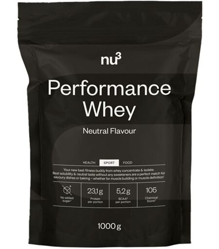 nu3 Performance Whey nu3 Performance Whey L'alta qualità di nu3 Performance Whey è un must per tutti gli appassionati di fitness. Colpisce per i migliori valori nutrizionali, l'ottimo sapore e la solubilità ottimale nel latte o nell'acqua. Ecco perché queste proteine in polvere sono la scelta ideale: Concentrato di siero di latte ultra-filtrato di alta qualità con il 5% di siero di latte isolato Almeno 4,7 grammi di Bcaa per porzione Senza zucchero raffinato, dolcificato con sucralosio senza calorie Nessun additivo inutile come aspartame, conservanti o esaltatori di sapidità Con otto deliziosi gusti, non c'è spazio per la noia. Dai gusti classici come vaniglia e cioccolato, ai tropicali come mango lassi, fino agli stravaganti come cookies cream, porta la varietà proteica nella tua vita quotidiana. Basta mescolare 30 grammi di polvere con 200 millilitri di acqua fredda in uno shaker e gustare. Mescolata al porridge del mattino, anche la colazione diventa una deliziosa bomba proteica. La versione non aromatizzata della polvere proteica è adatta anche alla cottura e al forno. Prima dell'allenamento o dopo: con Performance Whey di nu3 sarai sempre ben rifornito. Ingredienti: Proteine del siero di latte concentrate5 (90%), proteine del siero di latte isolate5 (5%), aroma, addensante: gomma di guar, gomma di xantano; cacao in polvere altamente disoleato (1%), emulsionante: lecitine (contiene soia), antiagglomerante: biossido di silicio, edulcorante: sucralosio. Valori Nutrizionali per 100g per 30g Energie / énergie/energia/valor energético/energy 1648kJ 389kcal 494 kJ 116 kcal Fett/ matières graisses/vetten/grassi/grasas / fat 6,2g 1,9g davon gesättigte Fettsäuren / dont acides gras saturés / waarvan verzadigde vetzuren/di cui acidi grassi saturi/de las cuales ácidos grasos saturados / of which saturates 4,2g 1,3g Kohlenhydrate / glucides / koolhydraten / carboidrati / hidratos de carbono / carbohydrates 6,3g 1,9g davon Zucker / dont sucres / waarvan suikers / di cui zuccheri / de los cuales azúcares / of which sugars 6,3g 1,9g Eiweiss / protéines / eiwitten / proteine / proteínas / protein 77,1g 23,1g Salz / sel / zout / sale / sal / salt 0,52g 0,16g Aminosäuren pro 100 g Pulver / acides aminés pour 100 g de poudre / aminozuren per 100 g poeder / aminoacidi per 100 g di polvere / aminoácidos por 100 g de polvo / amino acids per 100 g powder L-Alanin / L-alanine / L-alanina 3,7g L-Arginin / L-arginine / L-arginina 2,0g L-Asparaginsäure / acide L-aspartique / L-asparaginezuur / acido L-aspartico / ácido L-aspártico / L-aspartic acid 8,2g L-Cystein / L-cystéine / L-cysteine / L-cisteina / L-cisteína / L-cysteine 1,6g L-Glutaminsäure / acide L-glutamique / L-glutaminezuur / acido L-glutammico / ácido L-glutámico / L-glutamic acid 13,1g Glycin / glycine / glicina 1,4g L-Histidin / L-histidine / L-istidina / L-histidina 1,3g L-Isoleucin / L-isoleucine / L-isoleucina 4,8g L-Leucin / L-leucine / L-leucina 7,9g L-Lysin / L-lysine / L-lisina 7,2g L-Methionin /... ...