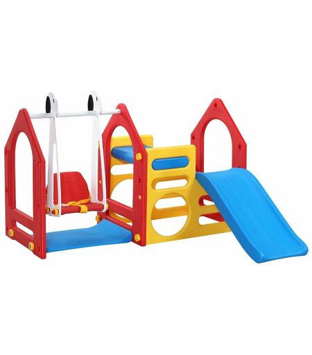 LittleTom - Palestrina per Bambini 1-4 anni 155x135cm Casetta gioco incl Scivolo Altalena Scalata Rosso Giallo Blu
