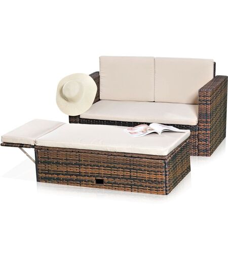MELKO Divano da giardino con tavolo pieghevole Brown Polyrattan Sedute da giardino mobili da giardino set divano panca