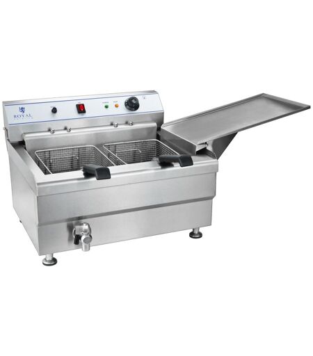 La friggitrice elettrica da 36 litri RCBG 30-2-B-STH della Royal Catering è stata concepita per un utilizzo professionale nel settore della gastronomia. Per fabbricarla viene utilizzato acciaio inox al 100%, facile da pulire e protetto dal rischio di corrosione. La resistenza da 9kW permette un riscaldamento rapido dell'olio ad alte temperature. Non appena viene raggiunta la temperatura desiderata, il termostato della friggitrice elettrica da 36 litri RCBG 30-2-B-STH ne garantisce il mantenimento costante. La friggitrice elettrica da 36 litri RCBG 30-2-B-STH è attrezzata ugualmente di un rubinetto di svuotamento che permette di svuotare l'olio nel massimo della semplicità. Il cestello misura 26,5x22x15 cm. La capacità massima d'olio è di 24 litri e lo strumento è equipaggiato di una zona fredda per consentire ai resti della frittura di depositarsi al fondo del vano senza bruciare. Questa friggitrice è particolarmente adatta per la cottura di churros, bigné, cosí come di polli interi! Acquistate la friggitrice elettrica da 36 litri RCBG 30-2-B-STH della Royal Catering e fate un affare! ...