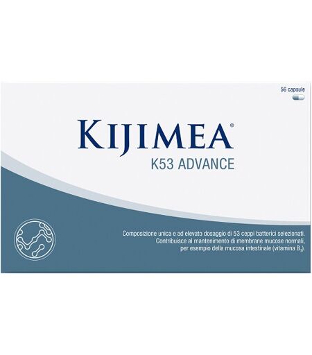 KIJIMEA K53 ADVANCE - Descrizione Integratore alimentare con 53 ceppi batterici selezionati, già presenti naturalmente nella flora intestinale. Contiene almeno 21 miliardi di microorganismi vivi. Inoltre Kijimea K53 Advance contiene biotina, che contribuisce al mantenimento delle membrane mucose no… ...