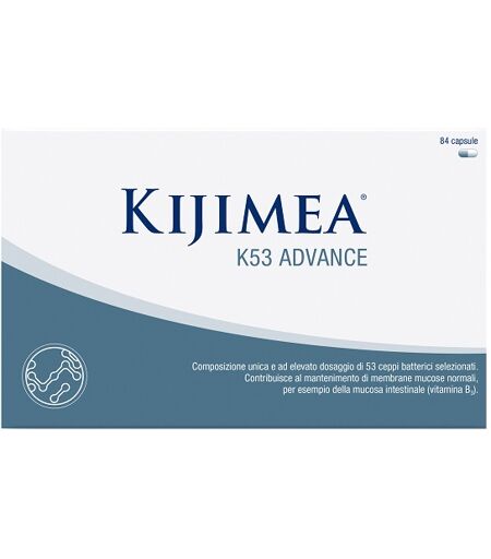KIJIMEA K53 ADVANCE - Descrizione Integratore alimentare con 53 ceppi batterici selezionati, già presenti naturalmente nella flora intestinale. Contiene almeno 21 miliardi di microorganismi vivi. Inoltre Kijimea K53 Advance contiene biotina, che contribuisce al mantenimento delle membrane mucose no… ...