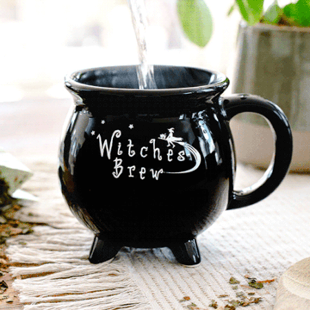 Tazza termosensibile calderone; Le fiamme appaiono quando si versano le bevande calde; Materiale: ceramica; Dimensioni tazza circa 9,5 x 10 cm, diametro circa 8,5 cm; larghezza con manico circa 12,5 cm; confezione circa 13 x 11 x 11 cm; Peso: ca. 430 grammi; ATTENZIONE: Non usare nel microonde e non lavare in lavastoviglie; ...