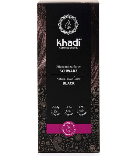 Senti la magia dei capelli neri profondi! Con il colore dei capelli khadi nero si evoca un ricco nero espressivo senza un cast blu nei vostri capelli. il nero khadi è più adatto se avete capelli biondi medi o più scuri. Poi si otterrà un nero lucido e caldo fino a un intenso nero corvino. Hai i capelli più chiari o grigi? Poi pre-pigmento con khadi Pure Henné per ottenere un risultato di colore perfetto. Il colore naturale dei capelli contiene ingredienti efficaci come l'indaco, l'henné e l'amla. Le tinture naturali colorano i capelli in modo intenso e scuro. Come una glassa di colore, i pigmenti vegetali avvolgono ogni singolo capello e lo nutrono. Si sente la resilienza e il volume nei capelli. Brillano in modo sano e brillano in un nero naturale. khadi Black è 100% naturale e vegano - senza additivi sintetici come ammoniaca, perossidi o coloranti azoici. Applicazione: Prima pulire i capelli con uno shampoo senza silicone. Si prega di pre-trattare i capelli biondi chiari, bianchi o grigi con khadi Pure Henné - con un tempo di esposizione da 30 a 60 minuti. Raccomandiamo anche di pre-pigmentare i capelli biondi, evidenziati o molto danneggiati, in modo che assorbano il colore in modo uniforme. Mescolare la polvere in acqua calda a 50 gradi. Mescolare con una frusta fino ad ottenere una pasta spalmabile. Aggiungete un cucchiaino di sale alcalino al vostro colore di capelli nero della pianta di khadi, si colora più velocemente e la durata è migliore. Applica il colore naturale sui tuoi capelli in modo uniforme con un pennello: ciocca per ciocca - dalle lunghezze alle punte. A meno che tu non voglia colorare solo le tue radici - allora spalmalo solo lì. Lasciare il nero khadi per 30-120 minuti. Più a lungo viene lasciato il colore dei capelli della pianta, più scuro sarà il risultato del colore. Per rinfrescare il colore naturale dei capelli, avete bisogno solo di 20 minuti. Poi sciacquare con acqua pulita - fatto. Non usare lo shampoo per 24-48 ore, perché questo è il momento in cui si sviluppa la profondità finale del colore. Poi applica l'olio per capelli khadi sui tuoi capelli e lascialo assorbire per 20 minuti prima di lavare i tuoi capelli con uno shampoo naturale. In questo modo si fissano i pigmenti - per un risultato di colore duraturo. ...