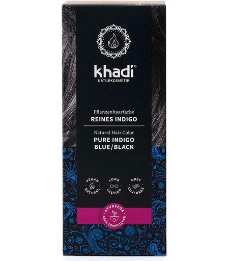Senti il potere dell'indaco puro. Con la tinta per capelli khadi Indigo plant, puoi colorare i tuoi capelli di un nero scuro e profondo con una sfumatura blu scintillante. Lasciatevi affascinare dal gioco di luce bluastro nei vostri capelli. Il colore naturale dei capelli è puramente vegetale e vegano. Perché il khadi Indigo consiste di indaco puro al 100%. Questo assicura un nero profondo e copre tutti i colori di base. Tuttavia, per i capelli biondi medi o più chiari, così come per i capelli grigi e bianchi, è necessario un pre-trattamento con Khadi Pure Henné. Il khadi Indigo è anche adatto per mescolare le tonalità rossastre se si vuole ottenere un tono cenere. O usarlo come balsamo per il risciacquo per ridurre le sfumature rosse. khadi Indigo colora i tuoi capelli in modo completamente naturale. I pigmenti di colore rivestono ogni singolo capello. Si sente forte e sano - e brilla in un blu-nero scintillante e misterioso. Applicazione: Prima pulire i capelli con uno shampoo senza silicone. Il colore per capelli vegetale khadi Indigo può essere usato puro su colori di base dal biondo scuro al nero. Hai i capelli più chiari? Allora per favore pre-pigmento con khadi Pure Henné. Lo stesso vale per i capelli grigi, decolorati, con striature o molto danneggiati. Mescolare la polvere con acqua calda a 50 gradi fino ad ottenere una pasta liscia. Aggiungere un cucchiaino di sale alcalino per rendere il colore indaco del khadi più veloce e intenso. Distribuire la tinta naturale sui capelli in modo uniforme. Applicalo con il pennello ciocca per ciocca, fino alle punte. Se vuoi tingere solo le radici, lascia fuori le lunghezze e le punte. Si prega di pre-trattare una base leggera con khadi Henné. Lasciare il colore naturale dei capelli da 30 a 120 minuti. Più a lungo viene lasciato acceso, più scuro sarà il risultato del colore. Per rinfrescare il colore sono necessari circa 20 minuti, per la semplice pre-pigmentazione circa 30 minuti. Poi sciacquare con acqua pulita - fatto. Non usare lo shampoo per 24-48 ore, perché questo è il tempo in cui Khadi Indigo si dispiega e sviluppa la sua nobile lucentezza blu. Prima di lavare i capelli, usate l'olio per capelli Khadi e lasciatelo in posa per 20 minuti. In questo modo il tuo nuovo colore di capelli durerà più a lungo. Nota: Ogni capello è diverso, proprio come noi siamo tutti diversi. Pertanto, i risultati con i colori naturali dei capelli possono variare. È meglio testare il Khadi Natural Hair Colour Pure Indigo su una ciocca di prova poco appariscente. ...
