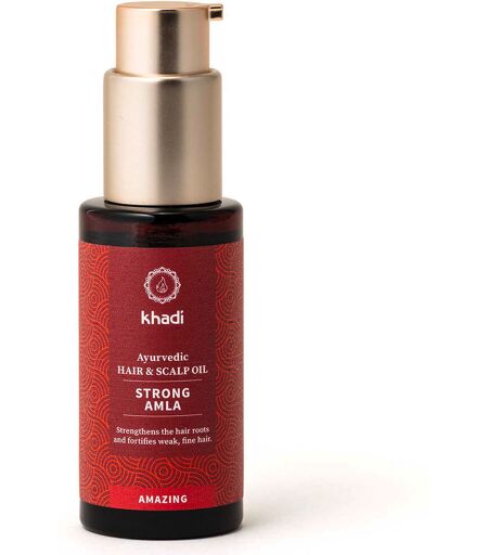 Khadi Strong Amla Ayurvedic Scalp and Hair Oil - per capelli sani, forti e lucenti dalla radice alla punta. Strong Amla fornisce alle radici dei tuoi capelli preziosi nutrienti e li rafforza in modo duraturo. Senti come l'olio per capelli Khadi avvolge ogni singola ciocca di capelli in un modo vellutato e morbido e rafforza i tuoi capelli dall'interno. Godetevi l'esperienza della cura intensiva e guardate avanti per capelli spessi e forti, perché un cuoio capelluto sano e radici forti sono il prerequisito per capelli belli. Il segreto di Khadi Strong Amla Scalp and Hair Oil è il potere magico dell'Elisir Khadi: piante medicinali indiane selezionate vengono fatte bollire delicatamente a fuoco aperto secondo antiche ricette ayurvediche. Questo estratto di erbe medicinali, ricco di principi attivi, rafforza le radici dei capelli e rinforza la struttura dei capelli. Le piante medicinali ayurvediche come l'amla e il brahmi sono anche utilizzate per combattere l'ingrigimento precoce: la produzione di melanina è stimolata e i capelli conservano il loro colore naturale. Hai capelli normali e vuoi più forza e volume? Volete conservare il più a lungo possibile il vostro colore naturale di capelli? Volete radici forti e una lucentezza vivace? Allora Strong Amla è perfetto per te! Nell'Ayurveda, l'olio per il cuoio capelluto e i capelli è sempre stato usato come cura intensiva e riparatrice dei capelli, perché costruisce i capelli dall'interno. Così i tuoi capelli non "sembrano" solo curati, ma dispiegano la loro forza naturale e la loro sana bellezza. Applicazione: Khadi Scalp and Hair Oil Strong Amla è tradizionalmente usato prima dello shampoo: Per questo, mettere 2 - 3 pompe in mano. Prima massaggia Khadi Strong Amla sul cuoio capelluto e poi distribuisci l'olio rimasto nella mano sulle lunghezze e sulle punte. Se la cura dei capelli è la tua principale preoccupazione, inizia con le lunghezze e le punte e massaggia il resto dell'olio per capelli nel cuoio capelluto. In alternativa, puoi spazzolare delicatamente Khadi Scalp and Hair Oil Strong Amla nei tuoi capelli con la Khadi Hair Care Brush - le speciali setole naturali fanno penetrare l'olio per capelli in profondità nel cuoio capelluto e nei capelli. Avvolgere i capelli con un asciugamano per tenerli caldi. Dare all'olio almeno 30-60 minuti per agire prima di lavare i capelli con lo shampoo khadi. Per un effetto più intenso, è meglio lasciarlo in posa tutta la notte. Usare la cura naturale dei capelli due volte alla settimana. Si può anche usare l'olio per capelli con parsimonia come leave-in. ...