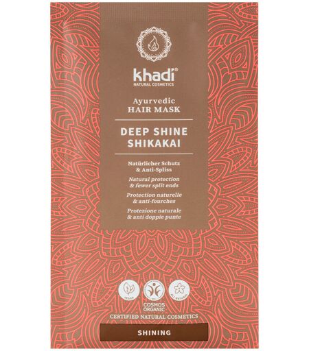 Guardia del corpo brillante contro le doppie punte: maschera per capelli lucida e protettiva. La Khadi Ayurvedic Hair Mask Deep Shine Shikakai è cura pura. In modo tradizionale ayurvedico e naturale, dona ai capelli lucentezza e li protegge dalle doppie punte e dalla secchezza. Le maschere per capelli Khadi sono la risposta ayurvedica alla cura solida dei capelli: naturali, altamente concentrate ed efficaci. Il segreto della maschera per capelli Deep Shine Shikakai, intensamente nutriente, si basa sull'Effetto Trinità khadi: 1. i singoli poteri efficaci delle erbe medicinali indiane raccolte a mano sono combinati in un insieme e il loro potere è potenziato. 2. le maschere per capelli sono composte secondo antiche ricette ayurvediche. 3. in un processo di fabbricazione tradizionale sono macinati così delicatamente e finemente - difficilmente si ottiene più fine di questo. Shikakai puro al 100 %: puoi già sentire come i tuoi capelli sono curati e protetti mentre applichi la maschera altamente concentrata. I baccelli di shikakai provengono dalla pianta di acacia Acacia Concinna e sono considerati un superalimento nell'Ayurveda. In hindi, shikakai significa "frutto per i capelli" ed è sinonimo di penetrazione intensiva dell'umidità, lucentezza e morbidezza naturale. La Khadi Deep Shine Shikakai Hair Mask porta il potere puro dello shikakai, evita che i capelli si secchino e quindi protegge efficacemente e durevolmente dalle doppie punte. Come bonus, ha un effetto antisettico sul cuoio capelluto e stimola anche la crescita dei capelli. La maschera per capelli Khadi Deep Shine Shikakai fa parte della serie di prodotti "Shining" - nel set si completano a vicenda per formare un dream team per idratazione, elasticità, pienezza e lucentezza per eccellenza. Coccola i tuoi capelli con la maschera come trattamento intermedio. Se usi già regolarmente cosmetici naturali, è anche un'alternativa nutriente alla maschera per capelli Deep Charcoal Cleanse. Potete usare la maschera per capelli Deep Shine Shikakai direttamente prima di colorare con le tinte per capelli vegetali khadi. L'effetto restitutivo permette ai pigmenti di colore di ricoprire uniformemente i capelli, per un risultato di colore intenso e duraturo. Applicazione: È così che la maschera per capelli Khadi Deep Shine Shikakai dispiega il suo effetto speciale: Metti una quantità corrispondente alla lunghezza dei tuoi capelli in una ciotola e mescola la polvere delicata con acqua tiepida fino a formare una struttura fine. Una bustina è più o meno sufficiente per un'applicazione su capelli di media lunghezza. Lavare i capelli e applicare la maschera sui capelli tamponati - semplicemente con le mani. Poi avvolgi un comodo asciugamano scuro e lascia la Deep Shine Shikakai Hair Mask per 10-30 minuti, a seconda dell'intensità della cura desiderata. Ora inizia la magia! Sciacquare bene la maschera per capelli Deep Shine Shikakai con acqua tiepida. Fatto. Consigli di sicurezza: Applicare solo sulla pelle... ...