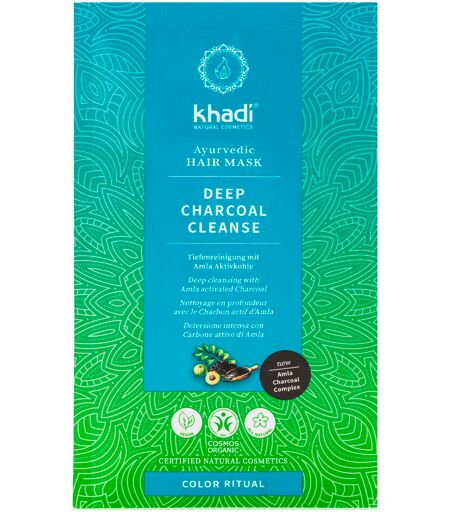 Detox per i capelli: Maschera per la pulizia profonda dei capelli e del cuoio capelluto con carbone attivo Amla in preparazione per le colorazioni dei capelli vegetali Khadi e come pulizia intensiva per il periodo intermedio. La maschera per capelli Khadi Deep Charcoal Cleanse Ayurvedic rimuove efficacemente e delicatamente i residui di silicone e di styling dai capelli e dal cuoio capelluto - in un modo tradizionale ayurvedico e naturale. Rivela la condizione reale dei tuoi capelli, che i prodotti convenzionali spesso nascondono. Il clou: il carbone attivo Amla - un'innovazione assoluta del mercato che è stato considerato un ingrediente segreto in Ayurveda per migliaia di anni. Il segreto della pulizia profonda dei pori si basa sull'Effetto Trinità Khadi: 1. il potere efficace individuale delle erbe medicinali indiane raccolte a mano si unisce per formare un insieme e viene potenziato nel suo potere. 2. Le maschere per capelli khadi sono composte secondo antiche ricette ayurvediche. 3. in un processo di fabbricazione tradizionale sono macinati così delicatamente e finemente - difficilmente si ottiene più fine di questo. Si può già sentire come il cuoio capelluto e i capelli sono liberati e possono respirare di nuovo mentre si applica la maschera altamente concentrata. Nell'Ayurveda, il carbone attivo Amla è considerato una vera cura miracolosa per una pelle bella e sana. Il carbone attivo "normale" può essere fatto, ad esempio, da carbone di legna, carbone marrone, carbone nero e persino plastica. Alla Khadi, tuttavia, qualcosa di molto speciale è usato come origine per il carbone attivo: Il super frutto Amla - contiene una porzione extra di vitamina C e antiossidanti. Per la maschera per capelli Deep Charcoal Cleanse, Khadi usa il carbone attivo della potentissima bacca di amla e combina così l'intero potere efficace della bacca con il potere di assorbimento chiarificante del carbone attivo. La ragione dell'effetto di pulizia profonda è il forte potere assorbente delle molecole di carbone. Il sebo in eccesso e le impurità sono attratti come da una calamita, legati e sciacquati via quando vengono lavati. E: la superficie assorbente, e quindi l'attrazione, aumenta con la finezza della polvere di carbone attivo Amla - chi conosce i prodotti Khadi sa che Khadi attribuisce grande importanza alla purezza e alla finezza. La noce di sapone indiana Reetha forma una schiuma delicata che pulisce tanto delicatamente quanto naturalmente e cura allo stesso tempo. La saponina contenuta nella buccia del frutto assicura una pulizia rilassata, anche per il cuoio capelluto irritato. Pulizia profonda al carbone: il 1° passo del rituale in 3 fasi di Khadi Vuoi colorare i tuoi capelli in modo naturale? Poi si consiglia di utilizzare la tinta per capelli vegetale Khadi nel rituale in 3 fasi. Il passo 1 è la preparazione con la Khadi Ayurvedic Hair Mask Deep Charcoal Cleanse. I siliconi e i prodotti convenzionali per lo styling avvolgono i capelli come una pellicola... ...