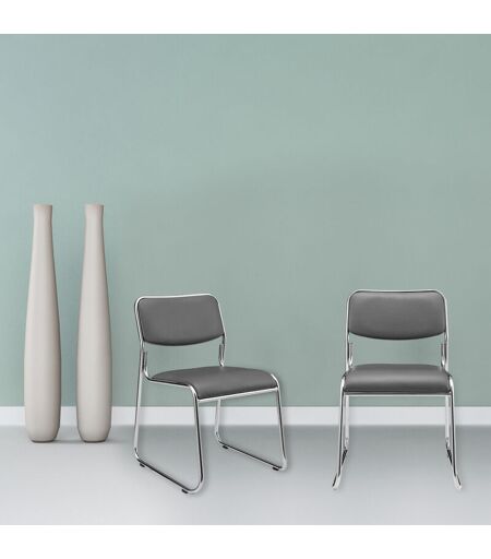 PRO.TEC Set di 4 Sedie da Conferenza con Telaio in Metallo Seduta e Schienale Imbottiti - Grigio