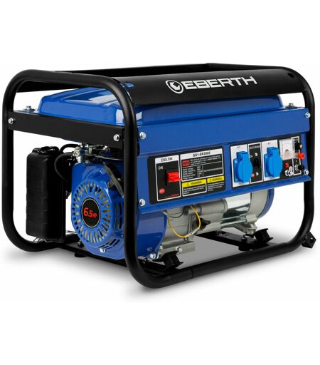 EBERTH 3000 Watt Generatore di corrente portatile Gruppo elettrogeno 6,5 cv Motore a benzina 4T, Monofase 2x 230V, 1x 12V, Regolatore di volt automatico