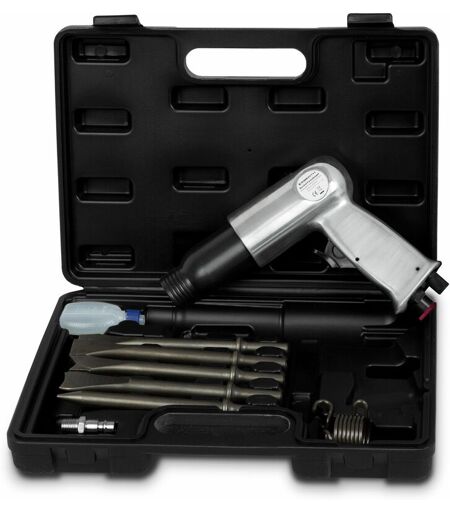EBERTH Scalpello pneumatico Martello pneumatico con set di utensili, set con 10 pezzi, scalpello pneumatico da 175 mm, 4500 colpi/min, incl. 5 accessori,