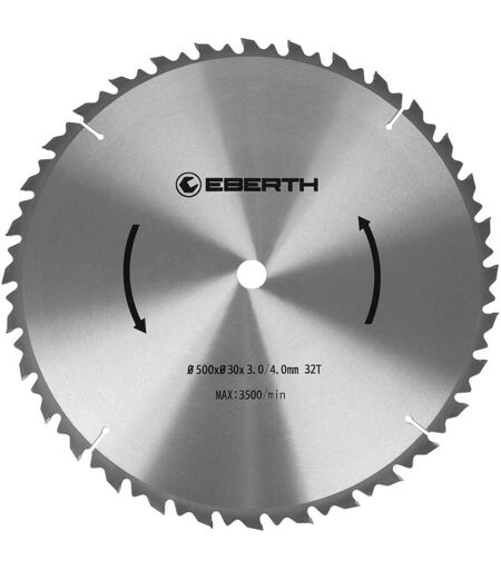 EBERTH Lama Sega Circolare tct per Xilografie (500 x 3,0 x 30 mm, 32 Denti, Carburo di Tungsteno)