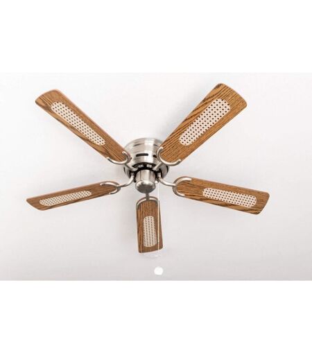 PEPEO Ventilatore a soffitto Kisa Deluxe nichel spazzolato senza luce - ala quercia/noce con interruttore a tirare incluso -