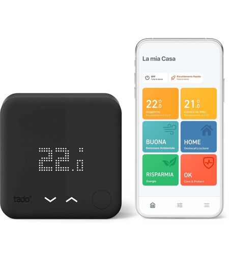 Il kit termostato intelligente cablato V3+ Black Edition Tado° rappresenta è un prodotto innovativo facente parte del settore del controllo climatico domestico. Progettato per offrire un ambiente confortevole e salutare, questo Assistente Climatico non solo ottimizza l`efficienza energetica, ma introduce anche un livello superiore di gestione remota e intuitiva del riscaldamento. Caratteristiche principali: Con l`App per Smartphone altamente intuitiva e le integrazioni Smart Home avanzate, il termostato V3+ consente agli utenti di controllare il riscaldamento da qualsiasi luogo, garantendo una gestione ancora più efficiente. L`interfaccia utente intuitiva e le funzionalità intelligenti rendono la regolazione della temperatura domestica un`esperienza semplice e personalizzata. Classificato come Termostato di Classe VIII, il kit offre una precisione di controllo superiore, assicurando un clima interno ottimale senza sprechi energetici inutili. La funzione di geolocalizzazione intelligente adatta automaticamente la temperatura in base alla posizione degli occupanti della casa, massimizzando il comfort e minimizzando i consumi energetici quando non necessari. Le funzioni smart implementate nel kit consentono una gestione avanzata del riscaldamento. L`utilizzo di skills intelligenti rende il sistema tado° ancora più adattabile alle esigenze dell`utente, migliorando la gestione complessiva del comfort termico. Inoltre, la versione Black Edition del kit termostato V3+ aggiunge un tocco di eleganza e modernità all`aspetto estetico del dispositivo, integrandosi perfettamente con gli ambienti domestici contemporanei. ...