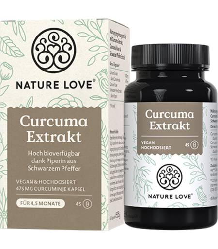 Curcuma - un potente antiossidante. La curcuma è una pianta originaria dell'Asia e contiene molta curcumina. La radice di curcuma essiccata e macinata viene spesso utilizzata come spezia. La curcuma ha molte proprietà che hanno un buon effetto sul corpo umano. Previene l'accumulo di grasso e aiuta a rimuovere il grasso dal fegato. L'estratto di pepe nero chiamato piperina aumenta la biodisponibilità della curcuma. Le capsule Curcuma Nature Love in una capsula contengono 475 mg di curcumina. Tutti gli ingredienti provengono dall'India, la patria della curcuma. Il prodotto è un integratore alimentare. ...