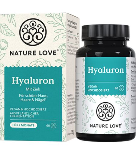 Acido ialuronico – naturalmente presente nella nostra pelle. L'acido ialuronico (o ialuronato di sodio) è una parte naturale del corpo umano. Si trova principalmente nel liquido articolare, nella cartilagine, nel tessuto nervoso e attorno al bulbo oculare e la concentrazione più elevata si trova nella pelle. È noto per la sua capacità di trattenere l'umidità, ma la sua concentrazione inizia a diminuire nel corso degli anni, quindi dobbiamo occuparci noi stessi dell'apporto aggiuntivo. L'acido ialuronico del marchio Nature love contiene 500 mg di acido ialuronico puro nella dose giornaliera raccomandata (1 capsula). Con aggiunta di zinco, che contribuisce ulteriormente a mantenere la salute di capelli, unghie e pelle. Lo zinco è un minerale importante che partecipa a molti processi nel nostro corpo. La maggior parte viene assunta attraverso l’alimentazione, in cui le fonti ricche sono principalmente ostriche, carne, frutti di mare, legumi, frutta a guscio e semi vari. È coinvolto in più di 100 reazioni nel corpo e svolge un ruolo importante in quanto contribuisce: a mantenere capelli, unghie, pelle e ossa sani, al metabolismo della vitamina A, dei macronutrienti e degli acidi grassi, al funzionamento del sistema immunitario, alla divisione cellulare e ai normali livelli di testosterone nel sangue, alla fertilità e riproduzione. Efficaci capsule vegane con le quali assumerai ben 500 mg di puro acido ialuronico al giorno. Il prodotto è un integratore alimentare. ...