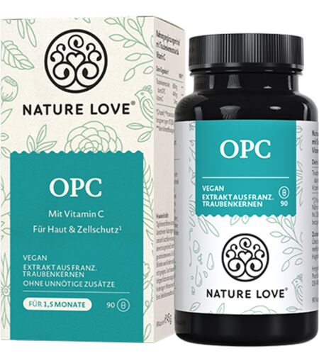 OPC - estratto di semi d'uva con vitamina C naturale. OPC o complessi di proantocianidine oligomeriche si trovano come composto nei semi d'uva e in molte altre piante. Le capsule OPC Nature Love contengono l'estratto di semi d'uva da uve francesi di qualità . Alta concentrazione di OPC da estratto di semi d'uva - ben 440 mg in 2 capsule. La vitamina C svolge un ruolo nella protezione delle cellule dallo stress ossidativo, il che significa che è un antiossidante. Aiuta anche a ridurre la stanchezza e l'esaurimento e svolge un ruolo nella formazione del collagene per la normale funzione della pelle. Un'ottima scelta durante i carichi pesanti sul tuo corpo. Il prodotto è un integratore alimentare. ...