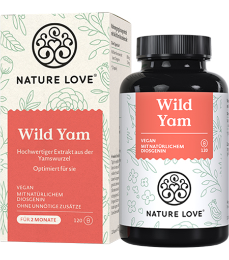 Igname selvatico – un supporto naturale per donne nel periodo di menopausa. L'igname selvatico messicano o "wild yam" in inglese e Dioscorea villosa in latino è una pianta originaria del Nord America. Prospera soprattutto nelle zone paludose. Per le sue proprietà la pianta viene usata dall'antichità, e anche al giorno d'oggi viene utilizzata sempre più spesso. Oggi è più spesso utilizzato dalle donne di mezza età, principalmente come: sostegno naturale durante la menopausa, supporto nella gestione dei sintomi della menopausa (febbre, sudorazione, irrequietezza, irritabilità). La dose giornaliera raccomandata contiene ben 880 mg di estratto di radice. L'igname selvatico del marchio Nature Love è particolarmente richiesto perché: la dose giornaliera raccomandata contiene ben 176 mg di diosgenina, non contiene glutine e lattosio, è adatto a vegetariani e vegani, per l'estrazione viene utilizzato un metodo estremamente delicato che preserva le preziose sostanze vegetali. Il prodotto è un integratore alimentare. ...