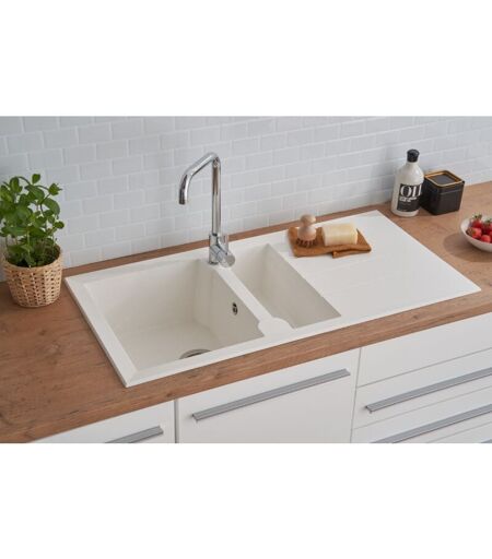 Respekta Lavello cucina lavello incasso Granito Mineralite 100 x 50 Bianco Respecta Alineo