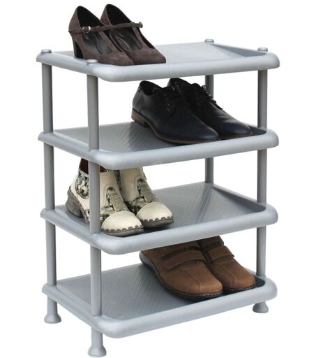 Scarpiera con 4 ripiani, in plastica di alta qualità di colore grigio Facile e veloce da montare grazie al sistema a innesto. Altezza 65 cm, larghezza 49 cm, profondità 30 cm ...