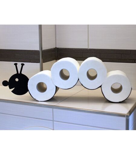 Porta rotoli di carta igienica di design con un divertente aspetto da bruco. Il bruco può contenere fino a 4 rotoli di carta igienica sul dorso. Può essere montato a parete, semplicemente appoggiato su un davanzale o su una mensola del bagno. Verniciato a polvere nel colore nero Non sono necessari altri lavori di assemblaggio. Dimensioni: larghezza 57 cm, altezza 16 cm, profondità 10 cm, peso 0,8 kg ...