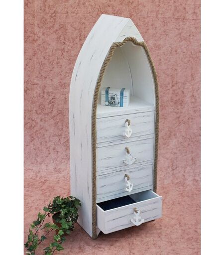 Mobile da barca Mobili da bagno. Cassettiera con 4 cassetti, realizzata in MDF. Molto decorativo. Dimensioni: altezza circa 117 cm, larghezza 41 cm, profondità circa 27 cmDimensioni interne dei cassetti: Larghezza 33 cm, profondità 22 cm, altezza 12 cm. ...