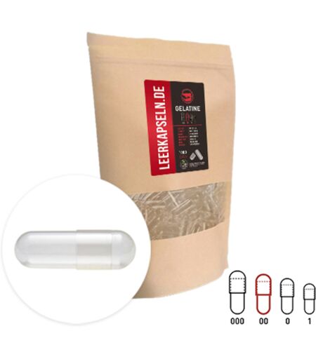 Capsule vuote trasparenti di gelatina – per una facile ingestione e dosaggio. Le capsule vuote sono fatte di gelatina di manzo e sono trasparenti e senza gusto. Fondamentalmente le metà sono leggermente attaccate, il che rende facile il primo riempimento, l’incisione tra le due metà della capsula consente una connessione rapida, solida e stabile. Prima del riempimento, le metà delle capsule devono essere separate manualmente. Benefici dell'uso delle capsule: mascherano perfettamente l'odore e il sapore sgradevole, facilitano il consumo, sono eccellenti per l' utilizzo delle proprie miscele, senza colori artificiali, senza conservanti, da gelatina di manzo e lunga durata (stampato sulla confezione), confezionato in imballaggi richiudibile (zip-lock). Diverse misure e confezioni: le capsule vuote sono disponibili in 4 diverse misure 000 (le più grandi), 00, 0 e 1 (le più piccole). Dipende dalla dimensione delle capsule quanto contenuto puoi riempire in esse. Inoltre, prestare attenzione se si sta già utilizzando un caricatore per capsule, poiché le dimensioni del caricatore per capsule e le dimensioni della capsula vuota devono corrispondere. Per facilitare il riempimento, è possibile utilizzare Caricatore capsule misura 00 >>. Attenzione alle dimensioni: per 00 capsule, è possibile utilizzare solo il caricatore delle capsule misura 00! Alcune idee per quali integratori alimentari puoi usare le capsule vuote: BIO Erba d'orzo, 400 g >> BIO Maca in polvere, 500 g >> Erba di grano in polvere BIO, 400 g >> Rosa canina in polvere BIO, 500 g >> ...