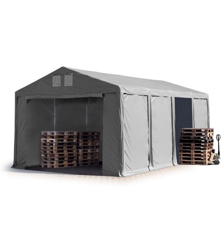 TOOLPORT Tendone deposito 5x8m Tendone Industriale con altezza laterale 3m telone in pvc 850 n grigio 100% impermeabile con apertura con cerniera -