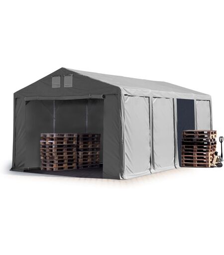 TOOLPORT Tendone deposito 6x8m Tendone Industriale con altezza laterale 3m telone in PVC 850 N grigio 100% impermeabile con apertura con cerniera