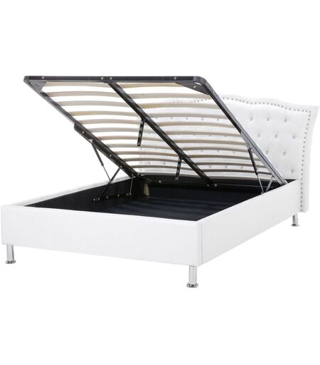 BELIANI - Letto con Contenitore in Pelle pu Bianca Stile Chesterfield 140 x 200 cm Metz