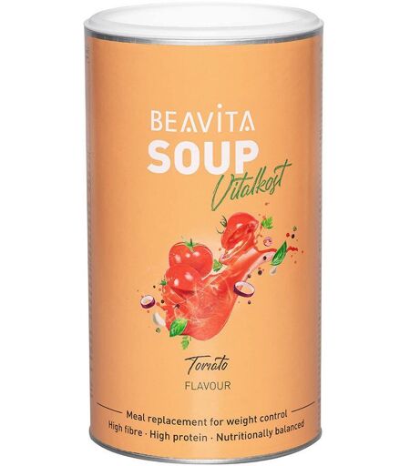 Si prega di condurre una dieta variegata ed equilibrata e uno stile di vita sano. Beavita Zuppa di pomodoro Solo 222 kcal per porzione Zuppa di pomodoro speziata Si prepara in meno di 5 minuti Quali sono i vantaggi della zuppa Beavita? La zuppa Beavita aiuta a ritrovare il benessere del corpo. La zuppa con sole 222 chilocalorie sostituisce un pasto completo e fornisce all'organismo tutte le vitamine e i minerali importanti. . Con oltre 14 grammi di proteine per porzione proteggono dalla perdita di preziosa massa muscolare durante la dieta. Se si sostituiscono due pasti al giorno con la zuppa Beavita, la zuppa aiuta a ridurre il peso nell'ambito di una dieta ipocalorica. Se si vuole mantenere il peso, un pasto al giorno può essere sostituito da una zuppa. In questo modo è più facile mantenere il peso nell'ambito di una dieta ipocalorica. Tutti gli altri pasti devono essere preparati in modo ipocalorico ed equilibrato. Contemporaneamente, è indispensabile un apporto di liquidi pari a 2-3 litri di acqua (o altre bevande senza calorie). Come si prepara la zuppa Beavita? La zuppa è facile e veloce da preparare e convince per la sua consistenza cremosa e la piacevole piccantezza. Per una porzione, mescolare 4 cucchiai colmi (60 g) in 250 ml di acqua bollente e mescolare con mezzo cucchiaino (2 ml) di olio di colza. Naturalmente, è possibile perfezionare il sostituto del pasto Beavita come si preferisce. Le verdure fresche, ad esempio, aggiungono varietà alla zuppa dietetica. Questo sostituto del pasto può anche essere facilmente integrato nella vita quotidiana. La preparazione rapida permette di avere una zuppa equilibrata in viaggio o in ufficio. Ingredienti: pomodori (32,5%), maltodestrina, proteine di soia (9%), proteine isolate di pisello, proteine del latte, sale, zucchero, fibra di avena (2,3%), minerali (sali di magnesio dell'acido ortofosforico, sali di calcio dell'acido ortofosforico, pirofosfato ferrico, solfato di zinco, iodato di potassio, gluconato di rame, solfato di manganese, solfato di manganese), olio di semi di girasole, cipolle (1%), erbe aromatiche (1%), aglio (1%), vitamine (acetato di retinile, colecalciferolo, acetato di D-alfa-tocoferile, fillochinone, acido L-ascorbico, ecc. tiamina cloridrato, riboflavina, nicotinamide, piridossina cloridrato, acido pteroilmonoglutammico, cianocobalamina, D-biotina, D-pantotenato di calcio), addensante : gomma di guar, aroma naturale, barbabietola, spezie. Analisi Media per 100g *Vnr% per 100g per porzione (252ml) *Vnr% per porzione Energia 1438kJ 340kcal - 937kJ 222 kcal - Grassi 2,6g - 3,5g - di cui acidi grassi saturi 0,4g - 0,5g - Carboidrati 51,3g - 30,8g - di cui zuccheri 20,3g - 12,2g - Fibre Alimentari 7,4g - 4,4g - Proteine 24,1g - 14,5g - Sale 4,44g - 2,66g - Vitamina A 412 g 51 247g 31 Tiamina 0,6 mg 51 0,3 mg 31 Riboflavina 0,9 mg 63 0,5mg 38 Niacina 9,7 mg 60 5,8 mg 36 Acido Pantotenico 3,1 mg 52 1,9mg 31 Vitamina B6 1,0 mg 72 0,6 mg 43 Biotina 29 g 57 17g 34 Acido Folico 120 g... ...