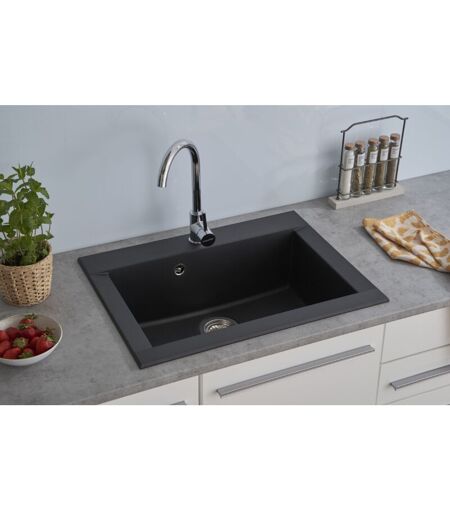 Respekta - Lavello da cucina Lavello da incasso Granito Mineralite 66 x 50 Nero Respecta Ohio