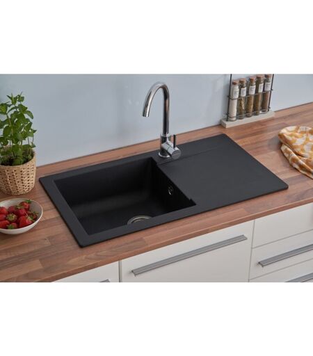 Respekta® Lavello in Mineralite Denver: Il lavello in Mineralite Denver di alta qualità non colpisce solo per il suo design moderno, ma segna punti anche in termini di funzionalità! La superficie è facile da pulire ed è resistente alle macchie e alle sostanze chimiche. Grazie al materiale composito composto da minerali, fibre di vetro e resina sintetica, il lavello è estremamente resistente, anche alle alte temperature fino a 180°. così come urti e graffi non hanno alcun effetto sul materiale. Il lavello può essere installato in modo reversibile (a sinistra o a destra) a partire da una larghezza del mobile base di 45 cm ed è quindi un punto culminante per la tua cucina. Caratteristiche del prodotto: Lavello da incasso con 1 vasca e Piano Gocciolatoio Colore: nero Installabili reciprocamente I fori del rubinetto non sono perforati ;it % 0a 60% di materiale composito costituito da contenuto minerale e fibre di vetro 40% di resina sintetica Elevata resistenza agli urti e agli agenti ...