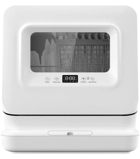 MERAX Lavastoviglie lavastoviglie da tavolo 5,7 lt per 3 coperti, addolcitore d'acqua integrato e 5 programmi di pulizia, display a led, funziona con/senza