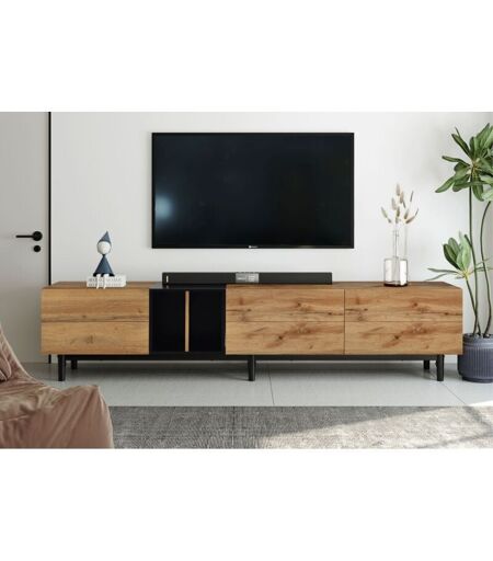 MERAX Mobile TV basso con design bicolore, mensole e 3 ante, mobile TV rovere selvatico Tavolo TV 195x48x37cm, in piedi e vintage industriale, colore