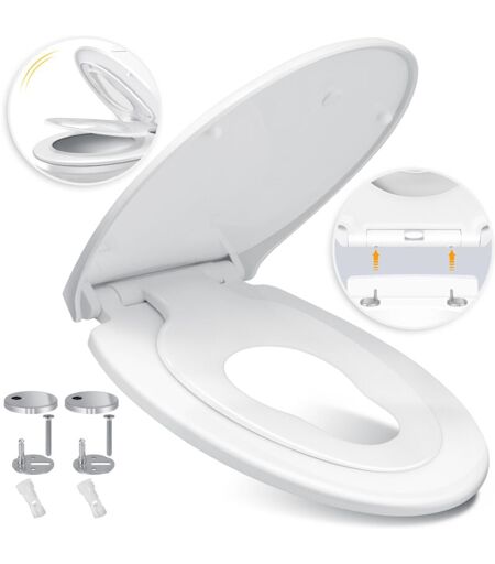 KESSER Sedile per wc con chiusura ammortizzata Coperchio per wc con funzione di sgancio rapido e chiusura ammortizzata - facile installazione Coperchio per