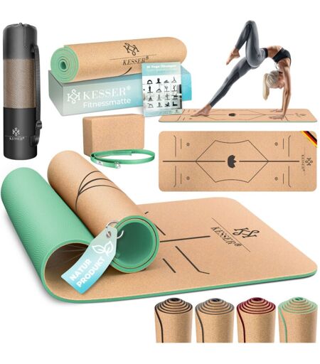 KESSER Tappetino da yoga in sughero con borsa per il trasporto e tappetino da ginnastica yoga block tappetino da yoga antiscivolo in gomma naturale tpe