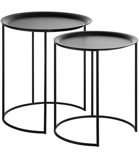 BELIANI Set di 2 Tavolini Tondi in Metallo Verniciato a Polvere Nero con Vassoio Twins