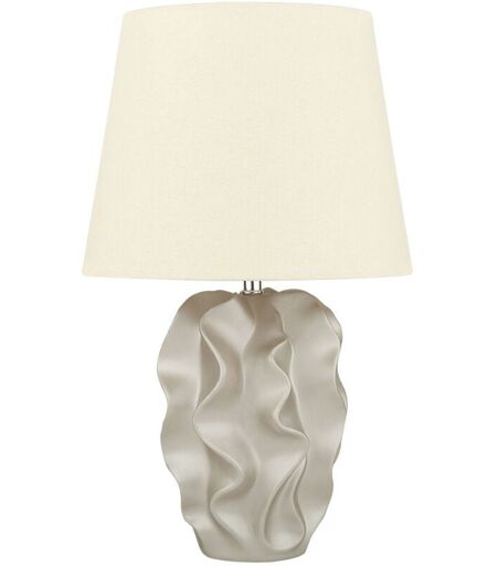 Lussuosa lampada da tavolo e comodino in colore beige. Aggiungi un pezzo molto glamour ed eclettico alla tua casa con questa lampada moderna. Attira l'attenzione con la sua base strutturata in ceramica di colore oro chiaro, che in combinazione con un piano color crema crea una decorazione bella e funzionale che si adatta a interni contemporanei ed eclettici. Grazie alle sue dimensioni compatte, la lampada può essere posizionata anche su tavoli più piccoli e la luce calda che emana regala una sensazione accogliente al soggiorno o alla camera da letto. Dettagli: Tipo di prodotto: Lampada da tavolo Stile: Moderno Colore principale: Oro, Beige Tonalità: Bianco sporco Tipo di materiale: Tessuto Materiale principale: Ceramica Materiale secondario: Tessuto Materiale della base: Ceramica Materiale del paralume: Tessuto Composizione del materiale: 100% Poliestere Potenza elettrica: Max. 40W Codice IP di protezione: IP 20 Lampadine richieste: 1 Voltaggio: 230 V (50 Hz) Dimensioni: Dimensioni ...
