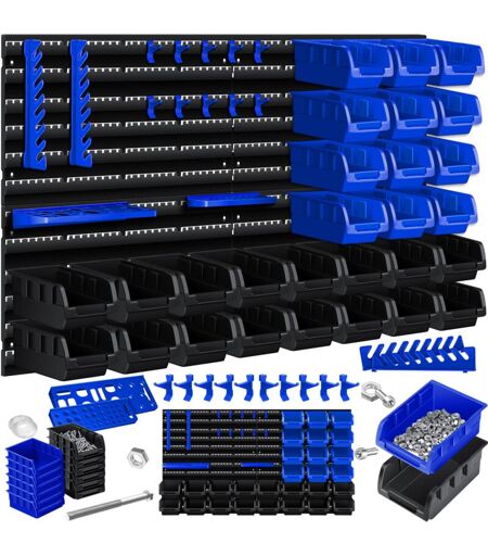 MASKO Scaffale a muro + Scatole impilabili + Portautensili, Scatola da 45 pezzi, Espandibile, Set Box, Scatole a giorno, Scatole impilabili +