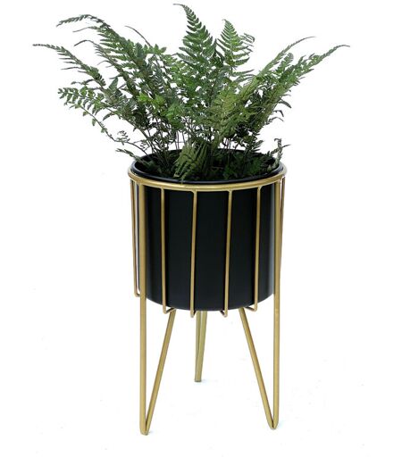 Con il robusto supporto per fiori con fioriera di DanDiBo, può trasformare qualsiasi sua pianta in un'attrazione, sia che si tratti di fiori, erbe, piante grasse, piante aeree, mini cactus o persino piante decorative artificiali. Arreda con stile il suo salotto, il suo ufficio, il suo bar o la sua terrazza, grazie al design moderno di questo supporto per piante. Il robusto telaio saldato assicura che le sue piante siano sempre al sicuro. Posizioni il portavaso ovunque, ad esempio in salotto, sala da pranzo, veranda, corridoio, cucina o bagno. Può anche posizionare il portavaso su un piccolo scaffale o su una credenza. Il vaso di fiori è completamente rimovibile e impermeabile. Carico di peso massimo: ca. 20 kg Dimensioni: altezza 40 cm, larghezza 22 cm, profondità 22 cm Diametro del vaso 21 cm Peso della fioriera: 0,7 kg Peso totale: 1,4 kg Materiale: Metallo, verniciato a polvere Colore: Oro e nero ...