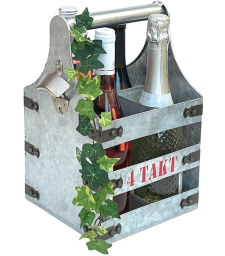Il portabottiglie in metallo DanDiBo con apribottiglie e scritta 4 bar su entrambi i lati è perfetto per qualsiasi festa in giardino, picnic, barbecue o gita. Molto robusto e decorativo, con spazio per un massimo di 4 bottiglie in scomparti separati. Si adatta a bottiglie da 0,33 litri e 0,5 litri, nonché a bottiglie standard e di champagne da 0,75 litri e 1 litro. Adatto come regalo per la Festa della Mamma, per i compleanni o semplicemente come piccolo ringraziamento. Il portabottiglie viene consegnato completamente assemblato. Materiale: metallo, colore: argento Dimensioni: altezza 33 cm, larghezza 22 cm, profondità 20 cm. Dimensioni dei singoli scomparti: 10 cm x 10 cm. Peso: 0,8 kg ...