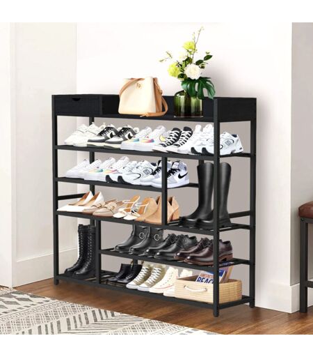 DANDIBO Scarpiera Salvaspazio Metallo Nero Moderna 6 Ripiani 100 cm con Mensola Porta Scarpe con Spazio di Stoccaggio Organizer per Scarpe Scaffale Porta