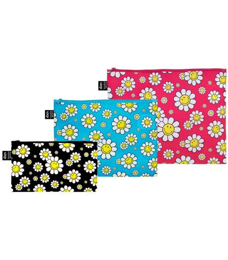 Loq Loqi Store Zip Pocket 'Smiley Flowers Acquarius Recycled' assortite, 3 pezzi assortiti