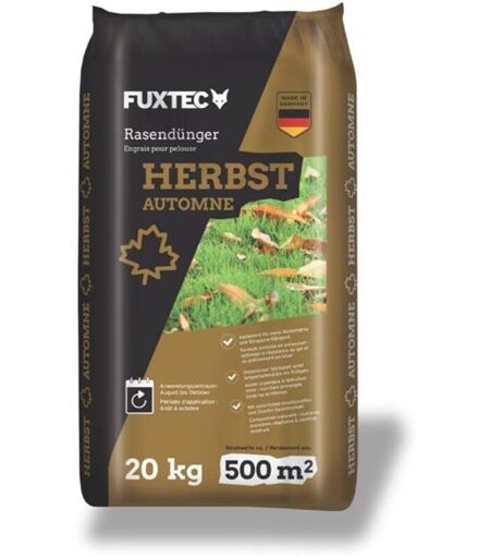 FUXTEC Concime prato autunnale FX-RDH20 – 20 kg NPK 5+3+12 con Azoto, Fosforo e Potassio – per ca. 500 m², protezione dal gelo e contro muschio