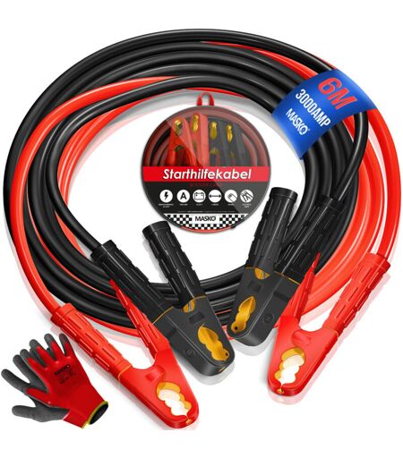 MASKO ® Cavi di avviamento per motori a benzina e diesel 6/12/24 volt. Cavo d'avviamento per auto e moto in rame, inclusi guanti e borsa per il