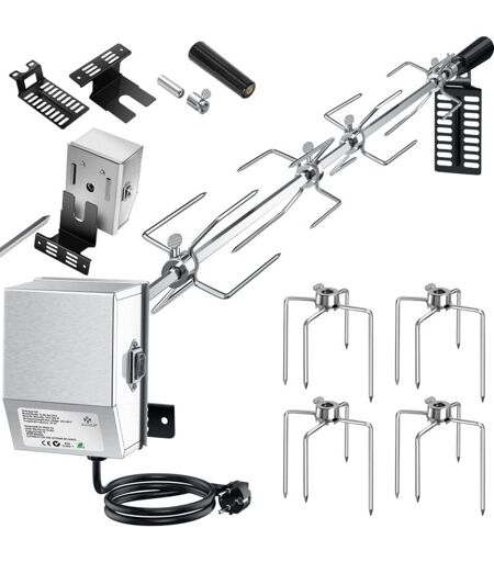 Set di spiedini per barbecue KESSER in acciaio inox per una qualità duratura, 4 robusti forchettoni per carne e un motore da 4 watt con 3-5 giri al minuto, elevata capacità di carico fino a 25 kg per vari cibi alla griglia La grigliata croccante con KESSER ha un sapore più succoso e migliore! Il clima si fa più caldo e le notti si allungano , quindi è tempo di prepararsi al meglio per l'imminente stagione del barbecue . Ottenete tutto dal vostro barbecue e stupite la vostra famiglia e gli amici con il nostro spiedo rotante del marchio KESSER . Gyros , pollo e molte altre prelibatezze alla griglia possono essere grigliate due volte quindi bene sullo spiedo della griglia . Soprattutto per piatti popolari come il maialino , il nostro spiedo per barbecue è un must assoluto ! Qui la carne gira e ruota da sola e assicura una cottura uniforme della carne . In questo modo la carne viene riscaldata in modo uniforme da tutti i lati e si ottiene una pelle croccante e una carne tenera e succosa . ...