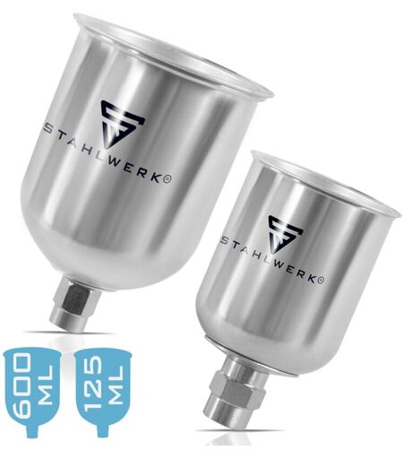 STAHLWERK - Set di tazze per vernice in alluminio / tazza di flusso da 125 ml e tazza per vernice da 600 ml